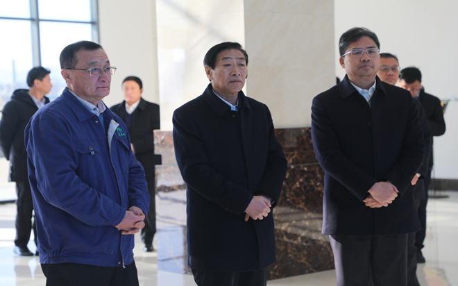 1月29日,沂源縣縣委書(shū)記王義樸(右前二)一行十余人來(lái)我公司看望省級(jí)勞動(dòng)模范、董事長(zhǎng)柴文...